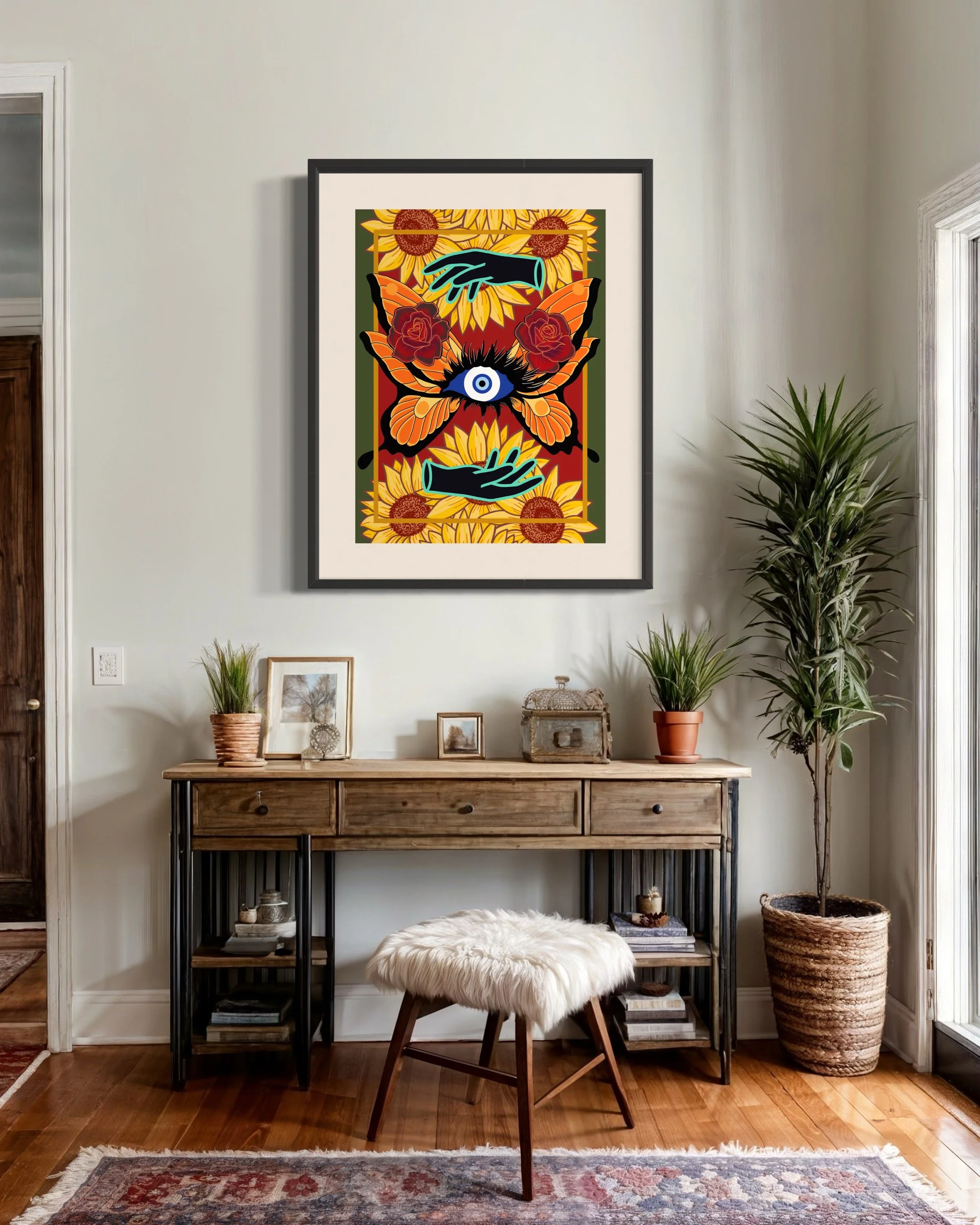 "From the moment I discovered her art on Threads to the day I framed it in my home, the entire experience felt magical. I love that a portion of the proceeds supports immigration reform, it made my purchase feel even more meaningful. The unboxing was stunning, every detail so thoughtful, and the stories behind each piece truly moved me. She even added a little freebie! This purchase felt like honoring my ancestry while supporting an indie artist living her dream. I can’t wait to collect more pieces from Sagrario Arte Studio."